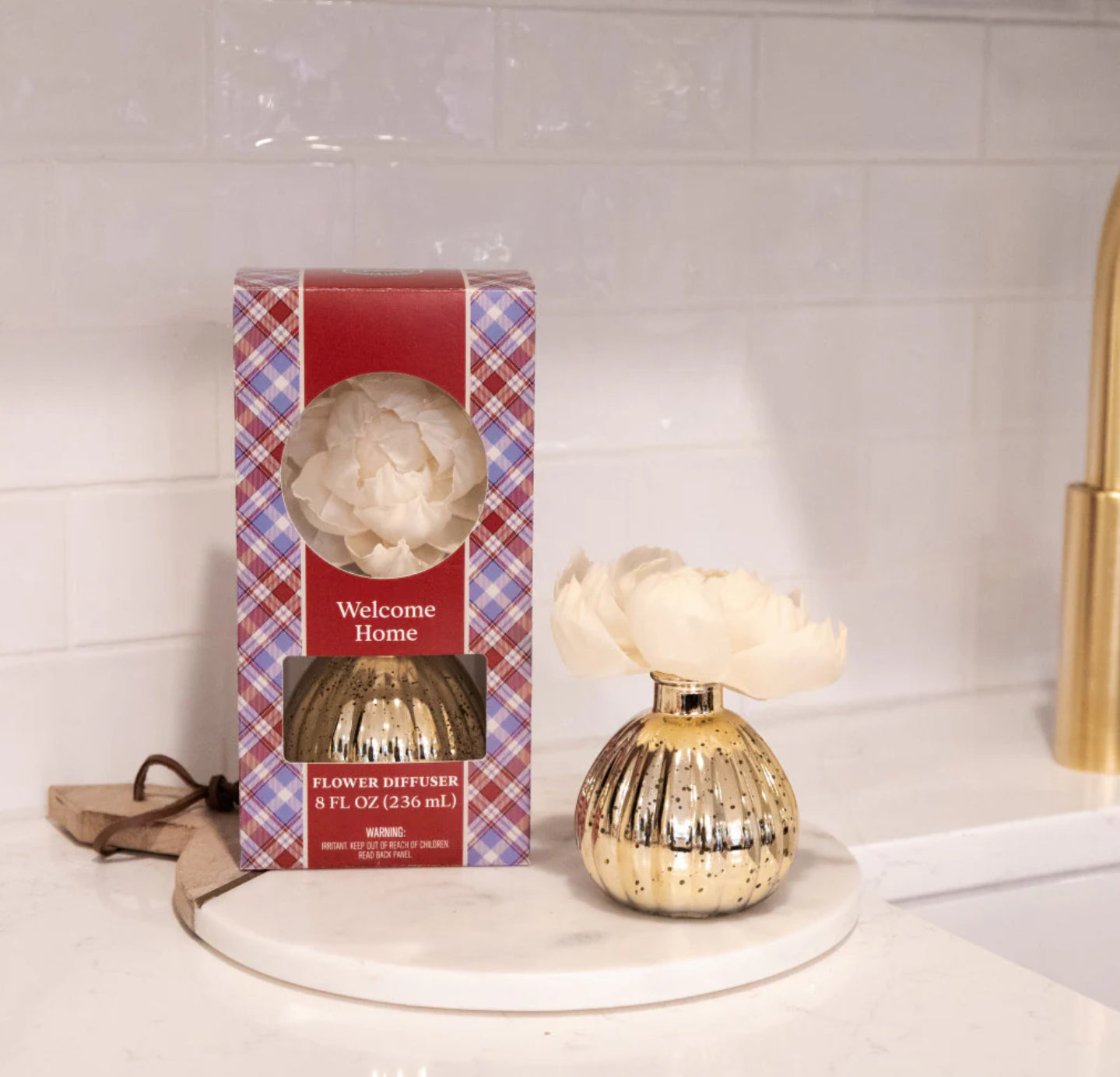 Elevate your space with our Flower Diffuser, featuring a gold and silver mercury finish that blends effortlessly into any decor. The neutral-toned flower adds a simple touch of beauty while filling your home with the fragrance you love for over 60 days. Consider this your new must-have for keeping your home feeling fresh and inviting.